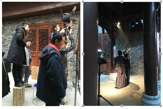 《忍者追逐》 這場(chǎng)戲, 為了畫(huà)面效果逼真,攝像組、燈光組全力以赴將攝影機(jī)架在高處,俯拍展現(xiàn)全景畫(huà)面。