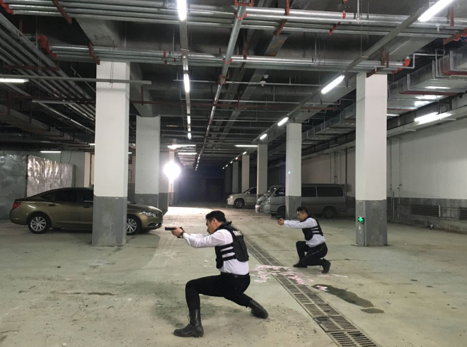 《劫匪逃跑》這場(chǎng)戲中,是考驗(yàn)演員演技的時(shí)刻,劫匪需要掌握整個(gè)逃跑過(guò)程的節(jié)奏,警察追趕的時(shí)間也要把握好,兩個(gè)人的站位,上車(chē)后倒車(chē)的時(shí)間點(diǎn),倒車(chē)的速度,撒錢(qián)的位置……導(dǎo)演現(xiàn)場(chǎng)講戲,演員們認(rèn)真領(lǐng)悟,爭(zhēng)取不NG !