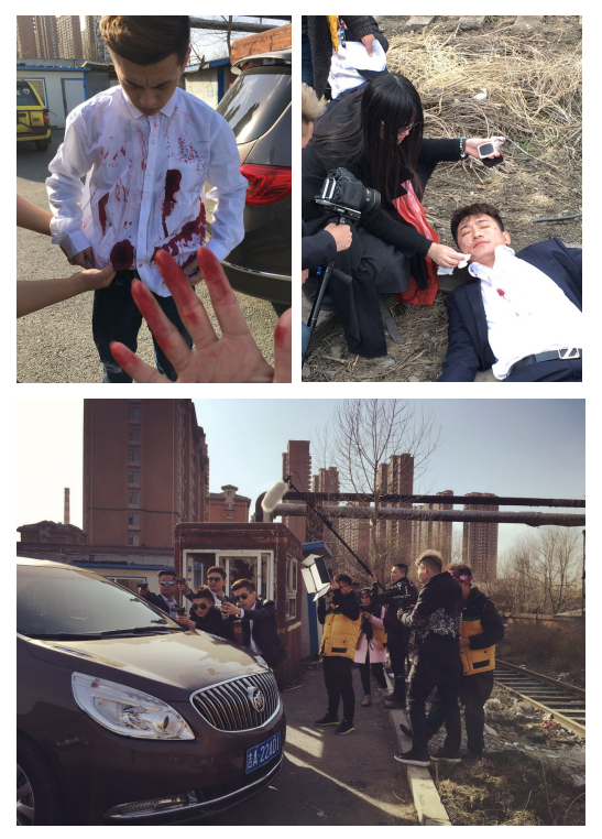 午休過后,繼續(xù)開始拍攝?;瘖y老師也是棒棒的,將演員狼狽的一面展現(xiàn)的淋漓盡致。這血跡和傷痕簡直太逼真了,演員們也都各自演技爆棚。