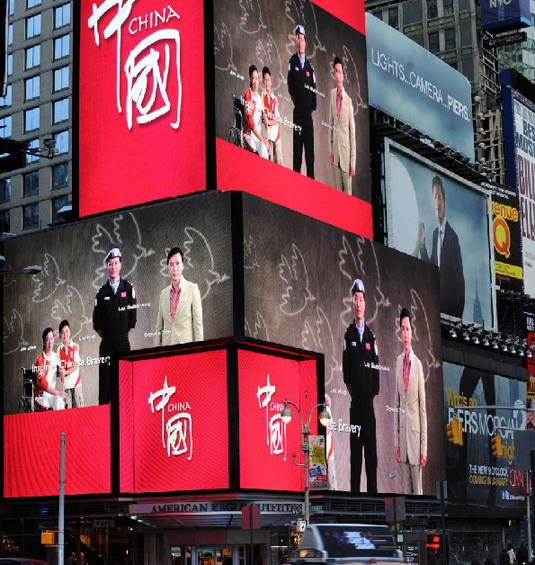 1、2011年1月,《中國國家形象片》在紐約時報廣場大屏播放,以“中國紅”驚艷亮相,吸引了世界傳媒的關注。