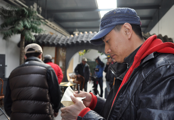 下面有請關(guān)東緣酒第三十二代傳人劉永超先生登場,為我們朗誦一首《緣酒啊 我親愛的緣酒》?!熬壘瓢。∥沂悄闳鷤魅?,是你八百年來優(yōu)秀品質(zhì)的繼承者……”劉永超先生手里拿的不是發(fā)言稿,而是一部深藏已久的釀酒專著。
