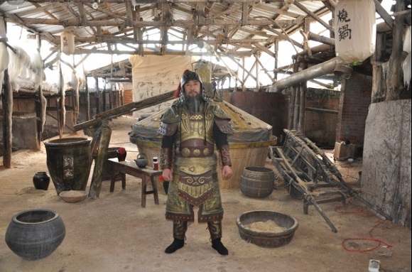 1214年,成吉思汗征伐金國,攻打到鄭家屯時,下令禁止使用火藥,就為了留下一個叫做劉家燒鍋的酒坊,也就是關(guān)東緣酒的前身。一代天驕,成吉思汗,來到劉家燒鍋以后再也不想去射大雕了,他決定要在此一醉方休。酒坊地面上堆放著釀酒用的糧食,師傅們正在熱氣騰騰的作坊里釀酒,忽見成吉思汗現(xiàn)身,大家頓時嚇得石化了。