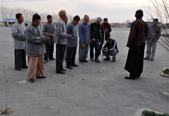 大攝影師坐的滑板車不錯哦,他美得伸著兩只手,口中念念有詞,“哪里跑……哪里跑……嘻嘻嘻……”,臉上一副陰險表情,目露兇光,不知道他要對攝影機做什么。排排站的壯漢們,可都不是一般人,都是號稱江湖第一幫的“丐幫”弟子??匆姏],個個拿缽。干啥?乞討唄!但是,看場面好像發(fā)生了不愉快,估計東家沒賞面子,兄弟們不樂意了,把碗摔地上,要打群架。