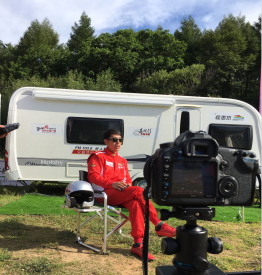身著專業(yè)的賽車服,正在訴說他對賽車的喜愛,對加入怪車坊這個(gè)大團(tuán)隊(duì)倍感溫暖。